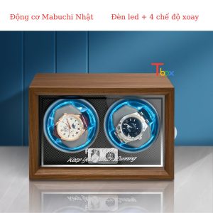 Hộp xoay lên cót đồng hồ cơ 2 xoay cửa kính tự dừng, 5 chế độ xoay, có đèn LED W163