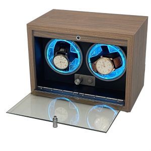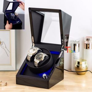 Hộp lên cót cho 2 chiếc đồng hồ cơ có đèn LED, 5 chế độ, cửa kính W142-B