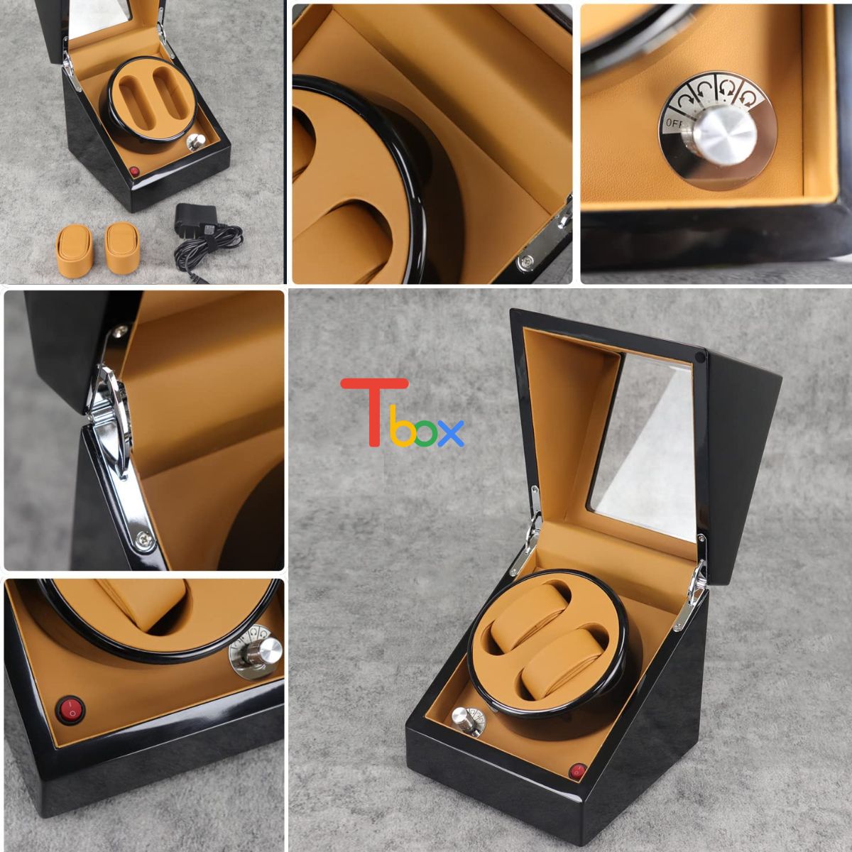 Hộp 2 xoay gỗ đỏ nỉ đen HX302B