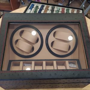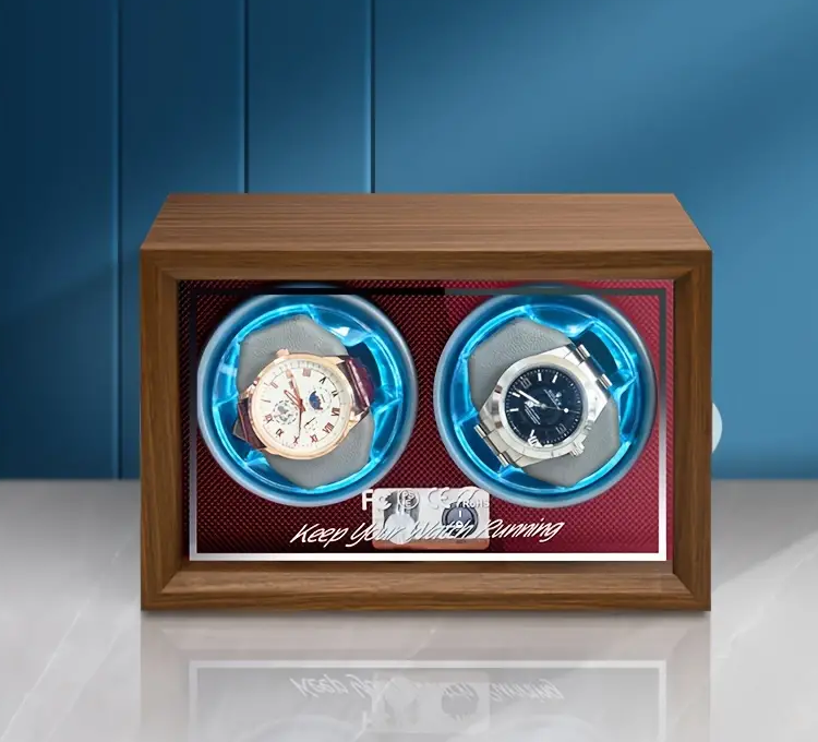 Hộp lên cót 2 chiếc đồng hồ bằng gỗ có đèn LED, 5 chế độ, gối cao su W142-R